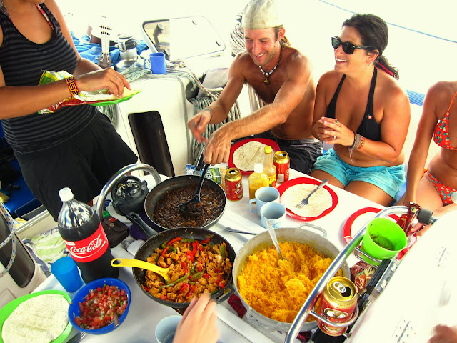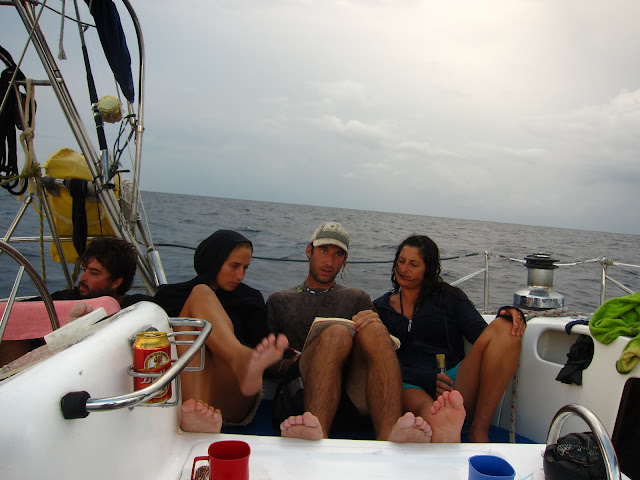 On fait connaissance avec notre capitaine Tilson, un petit colombien avec un tatouage de pirate et sa copine américaine, Lauren, qui sera notre cuisinière toute long du trajet. Elle servira aussi de traductrice aux 4 jeunes américains qui m'accompagnent pour ces 5 jours en mer. Leur nom, Nick chauffeuru de taxi à Hawaï, Lila qui travaille pour des shows télévisés à Los Angeles, Jonathan journaliste à LA, et Aimee la toute jeune, institutrice dans le New Jersey.