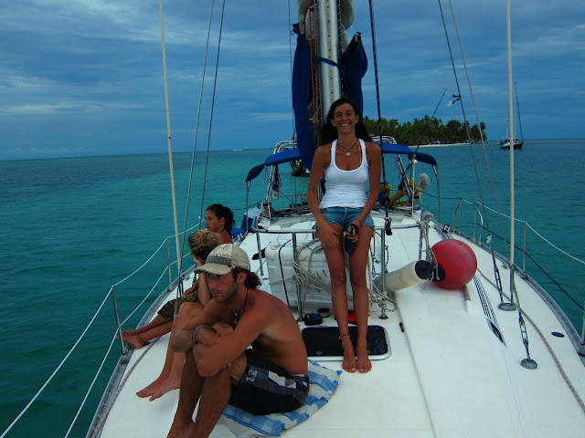 Le soir on fait escale dans une petite île où l'ont rencontrera le lendemain l'équipage d'un autre bateau, un catamaran du nom de Viva, celui que j'aurais du prendre si je n'avais choisi le Windsurfer et on rencontrera sur la plage au détour d'une partie de freesbee une belle argentine, seule qui cherche un bateau pour se rendre en Colombie. Je lui négocie le prix à moitié du notre et la voilà nouvelle coéquipière de voilier. Nora est son nom. Elle a un tambour qu'elle joue et chante parfois des chansons sur la force des femmes. Elle me fait penser à l'héroine d'un livre, la sorcière de Portobello, qui est connectée à la planète et aux énergies cosmiques. Fait étonnant, le livre est sur le bateau et en le lisant elle se reconnait dans le personnage. En tout cas je peux enfin parler espagnol sur le bateau et je lui sert d'interprète quand Nick, séduit, tente de communiquer avec elle.