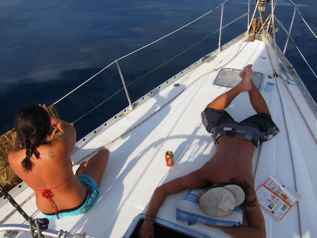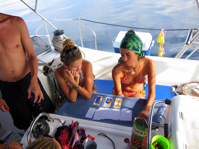 Le lendemain matin préférant rester une journée de plus à rien faire que de nager au lieu de prendre le large, on reste ancré au large de la petite île et on occupe la journée comme on peut. En tirant les cartes pour certains, en dormant, faisant des mots croisés où en lisant. Journée très farniente.