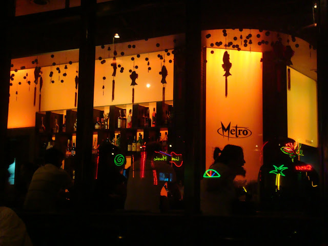 Eric est là depuis 5 jours et lui le citadin connaît déjà son sujet. Il tourne dans les rues, nous emmène dans une boite où on voit tout un tas de jeunes filles en jolie robes scintillantes mais incapable de dire qui est professionnelle et qui ne l'est pas. En tout cas ce bar bouge bien mais on le quitte pour se rendre dans l'une des boites les plus connues de la ville. Le Heart of Darkness.Pareil qui est qui dans cette boite ? beaucoup d'européens qui font les beaux devant quelques cambodgiennes qui boivent un coup à leur frais avant sûrement d'aller en tirer un. C'est le mal avec ce genre de pays les filles sont prêtes à tout pour se sortir de leur misère alors la plupart même sans être professionnelles profitent du touriste. Je pense que pour la plupart la seule façon de faire la différence pour certaines se voit le lendemain matin si elles vous donnent la note ou si elles vous donnent leur numéro ou juste un bisou d'adieu. La piste de dance est remplie de ces danseuses aguicheuses et aguichées. On rencontre un français qui nous raconte qu'un matin après avoir passé la nuit avec l'une d'elle pensant qu'ils étaient amis-amants, la fille lui tend le téléphone où une femme lui demande de payer 20 ou 40 dollars car la fille travaillait. Pour lui ce fut l'hallu !! L'endroit est sympa mais ce qui s'y passe a un fond un peu glauque.