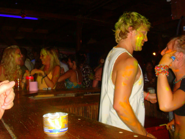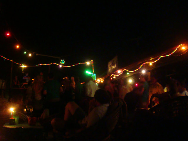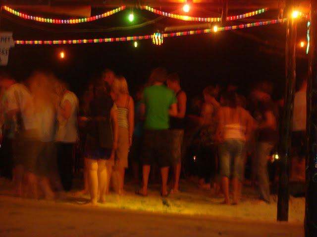 Pour finir la journée en beauté je refais comme hier, je retourne au même barbecue de poisson, commande le même plat qui est toujours aussi délicieux, noue connivence avec le serveur, le même que la veille et vais faire un tour au bar de la plage où je retrouve Els qui boit un verre toute seule. Je m'installe avec elle, on discute un peu, puis on discute avec un écossais avec qui un moment je parle de mon âge (peut être parce qu'il me l'a demandé). Lui a 39 ans, moi 34 !! Je lui dis que je suis un peu plus vieux que la moyenne des autres voyageurs qui pour la plupart on 23 ans. Je lui dis que je suis après la jeunesse et avant le descente vers la "vieillesse". Je lui dessine une courbe sur le bar pour lui dire que je suis juste avant la descente… il me dit "alors t'es au top, t'es en haut, à ton apogée, profites en !!" Eh !! pas con !! Soirée pas mal pour un mardi, toujours ces jeunes qui débarquent dont on ne sait où pour finir à danser sur le sable ou sur la piste.