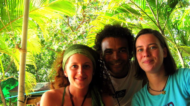 Plus on passe de temps ensemble et plus on se sent de plus en plus proche. Nos discussions sont faciles, l'impression de se connaître depuis toujours. Pourtant on continue de se quitter et se revoir en bon voisin sur le pas de nos portes distantes d'un petit pas. Un petit pas pour l'homme et un grand pas pour elle et l'humanité. Ce matin je lis à la table du petit déjeuner, tranquille, tout seul. Veerle vaque à ces occupations. Je regarde une mototaxi qui passe sur la route, qui fait demi tour et s'apprête à repartir. Sauf que la passagère de la mototaxi je la connais. Avant que la moto ne redémarre, je siffle et fais des signes à la passagère. Elle me voit, dit au chauffeur qu'elle s'arrête là et me rejoins. C'est Els, la belge, celle qui a le plus beau métier du monde et qui conduit des trains. Je lui dis que je pensais la revoir au bar de la plage mais qu'en vain. Elle me dit qu'elle a finalement parlé à son ancien copain de vacances, cet anglais qui ne savait pas qu'elle était revenue, et qu'il l'a accueillie chez lui. Il est prof de plongée et toute la journée elle reste seule. Je lui propose de rester la journée avec nous, entre belge flamand. Veerle arrive, je la présente, elles s'échangent quelques mots en viking puis la discussion reprend en anglais.