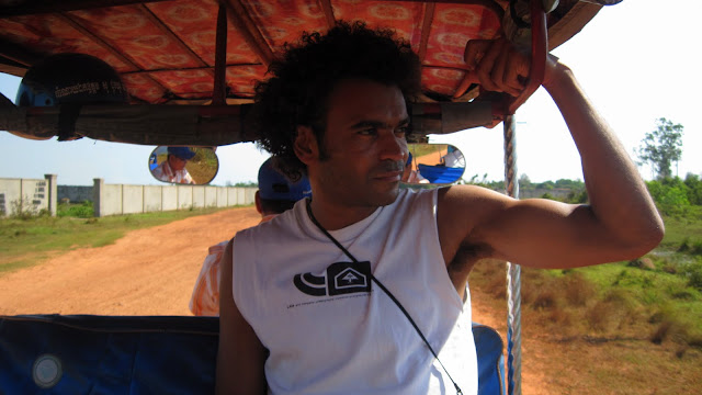 Pour eux sortir de leur région est un voyage en soi, sortir du pays une aventure, alors traverser le monde, c'est un truc qu'il n'avait pas même imaginer. Un français noir qui fait le tour de la planète.... je dois leur être un extraterrestre. Un voyageur du futur ! Après ce cours de géographie improvisé, je prends congé de cette gentille famille. Mister Mot me ramène et on passe à l'hostel des allemands. Ils sont là sur la terrasse à finir de manger et à boire un verre avec Da Chea. Je me joins à eux quelques instants avant de leur dire aurevoir et de rentrer me coucher.