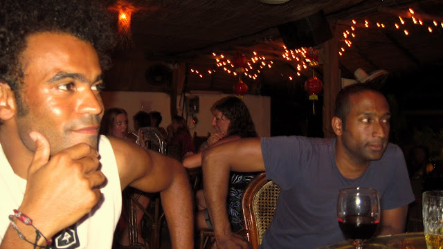 Dernier barbecue de poisson avec mon serveur et mon cuisinier préféré. Je leur dis que c'est la dernière fois que je viens manger ici. Le jeune serveur me fait penser à un personnage de "Killing Field". Je les prends en photo pour souvenir et Veerle et moi dégustons ce poisson et ces pommes de terre avec cette sauce délicieuse avant de partir rejoindre ses amis au Monkey Republic se boire quelques verres.