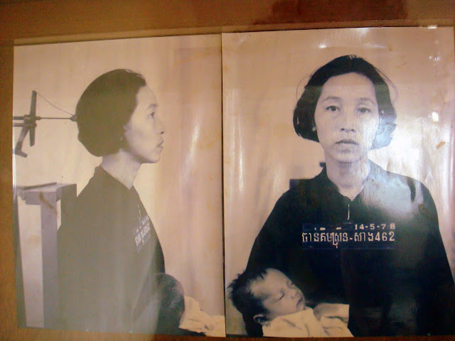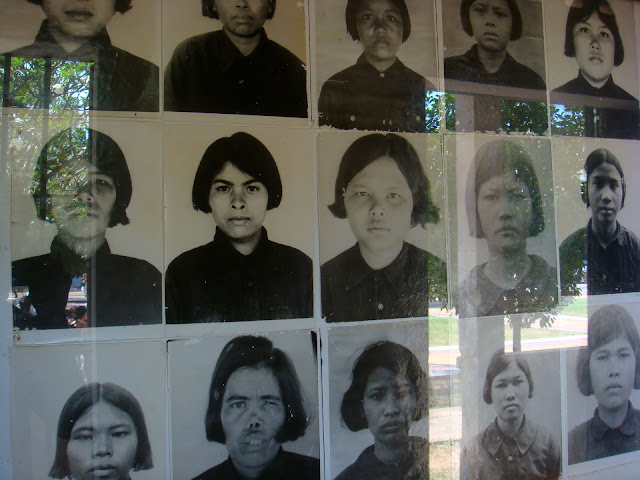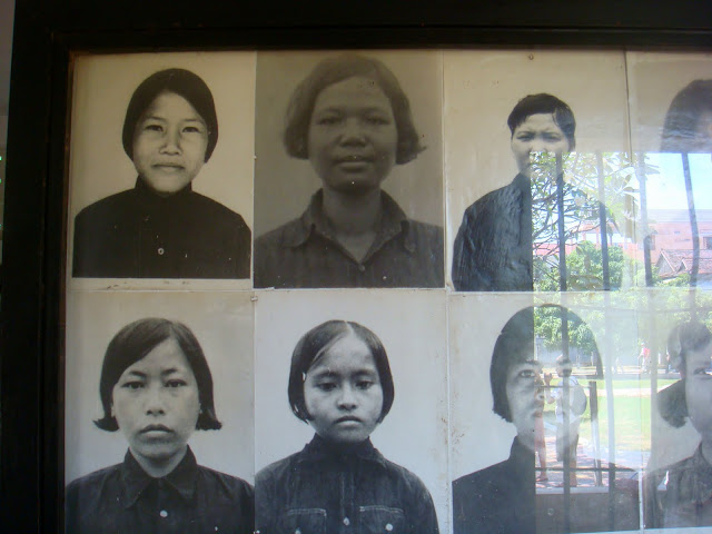 On continue la visite de l'école qui a des airs d'école en vacances, ensolleillés, vide, mais remplie d'esprits torturés. Il y a deux étages. Dans une salle, il y a les photos des prisonniers. Photos prises à leur arrivée. Des femmes, des hommes, des enfants. Certains sourient pour la photo, d'autres tirent une tête comme si ils savaient leur fin proche.