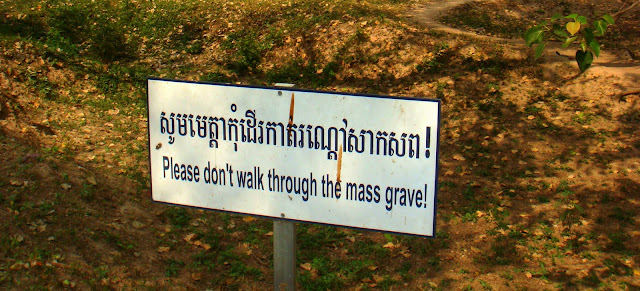 La plupart furent enterrés à côté de l'école, mais quand la place vint à manquer face à cette machine à tuer, ils construisirent un camp de la mort à 5km de là : Choeung Ek plus connu sous le nom de "Killing Fields" (les collines de la mort). Son nom veut tout dire. C'est comme un immense charnier et camps d'extermination où venaient finir d'être exécuté les déportés de S21.