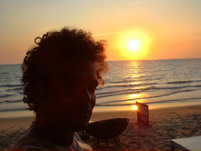 Encore une après midi qui passe sans stress, juste à profiter du moment. On avait dit au chauffeur de la motorbike de venir nous rechercher au soleil couchant, alors il est là et nous attend. On regarde encore un peu le soleil avant de disparaître dans sa cariole.
