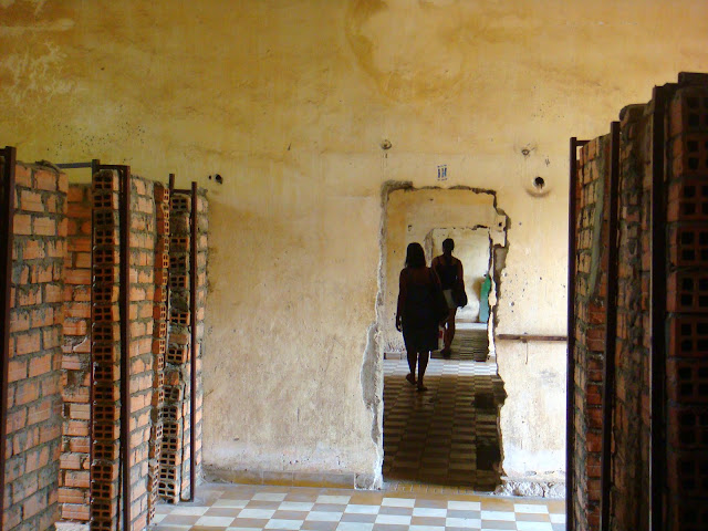 Aujourd'hui n'est pas un jour comme un autre. De toutes les visites que l'on peut faire en Asie, peu peuvent marquer autant les esprits. Il y eu le musée de la guerre d'Ho Chi Minh ville au Vietnam avec des photos assez fortes, mais l'endroit où nous allons aujourd'hui n'est pas un simple musée, c'est l'endroit même où l'un des plus grand génocide de l'histoire à eu lieu, l'extermination de la population intellectuelle du Cambodge par son propre dirigeant, Pol Pot, qui voulait faire basculer son pays dans une espèce de maoïsme, un socialisme poussé à l'extrême, partant d'un faux bon sentiment, donner le pouvoir au gens qui travaillent la terre, mais là où la folie l'a emporté, fut que pour cela, la dictature des khmers rouges a condamné à mort tout ceux qui ferait ombre au projet, c'est à dire tous les partisans de l'ancien régime (qui a été renversé en 1975), les étrangers et les intellectuels du pays jugé "ennemi de l'état". Le rapprochement avec la Chine est évidente, sauf qu'en Chine on laissait le choix aux intellectuels de se faire rééduquer dans des fermes au fin fond des campagnes ou de se faire violemment réprimer. Au Cambodge, ceux qui n'ont pas pu fuir à temps, n'avaient aucune chance et tentaient de fuir coute que coute une mort certaine. 20% de la population a ainsi été exterminée par son propre régime à travers tout le pays. La famille de mon pote de CE1, Kim Kaon Eap, a du débarquer en France lors de cette période après avoir fui leur pays à bord d'un boat people.