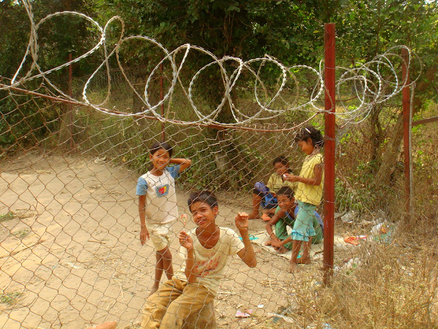 A la porte je vois tous les enfants qui nous regardent. Ils sont là et me regardent avec une grande curiosité. Parfois on s'échange quelques grimaces, quelques sourires, et quelques clics de photos. Je suis leur idole et ils s'amusent ainsi.