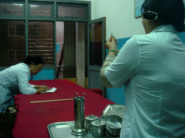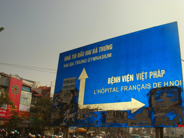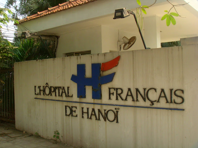 On sent le style français, bâtiment tout blanc, tout propre. Le temps de remplir les papiers d'assurance, de dire que j'ai oublié ma carte d'expatrié et de m'entendre répondre que la ristourne ne se fait que si on montre la carte, je m'en vais voir le docteur Isabelle. Fort à parier qu'Isabelle est le prénom et pas le nom. Je vois une jeune femme en blouse passer dans le couloir. Je suis sûr que c'est elle. J'attends qu'on m'appelle et on me conduit à son cabinet. C'était bien elle. Décor succin, un bureau, quelques instruments et l'espèce de lit où on s'allonge. Je lui explique mon cas et ma rencontre infortune avec ce chien du village de Sapa. Elle fait les grands yeux quand je lui dit la date de la morsure. Une semaine !! le mieux est de venir dans les 3 jours pour que ce soit efficace. Elle me dit que j'ai peut être trop attendu pour faire un simple rappel et que je dois faire un rappel un peu plus lourd. Elle me décrit ce que je risque de devoir subir, j'espère n'être pas si en retard que ça car ça à l'air de faire mal. Elle n'est pas trop sûr et elle appelle une consœur pour confirmer la marche à suivre. Elle regarde ma cicatrice. Belle cicatrice. Elle me dit que le simple rappel devrait faire l'affaire. Elle me dit que je devrais néanmoins faire deux rappels. Un aujourd'hui et un dans 3 jours. Le seul hic c'est que la veille j'ai réservé mon départ d'Hanoi pour le centre du Vietnam et je pars demain soir !! Je lui demande si je devrais le faire moi même ? (style) Elle me dit surtout pas et me donne le nom d'un hôpital sur Danang où je pourrais le faire faire. Justement une ville où je m'arrêterais pas !! On discute un peu, me parle un peu du Vietnam, me dit qu'exercer la médecine ici c'est loin d'être comme en France. Je me demande quelle vie elle a ici sur Hanoi. Pourquoi vouloir être médecin dans un pays où il faut lutter pour avoir ce qu'en France on a de suite, d'exercé son métier à un niveau en deçà que si elle était resté à Paris alors qu'elle semble en début de carrière. Apprécie t'elle sa vie sur Hanoï. Moi je ne fais que passer mais elle c'est devenu sa résidence. Est elle heureuse et épanouie comme mes voisins. Questions que je ne lui poserais jamais, sauf si on se buvait un bière au Bia corner.