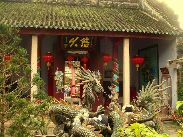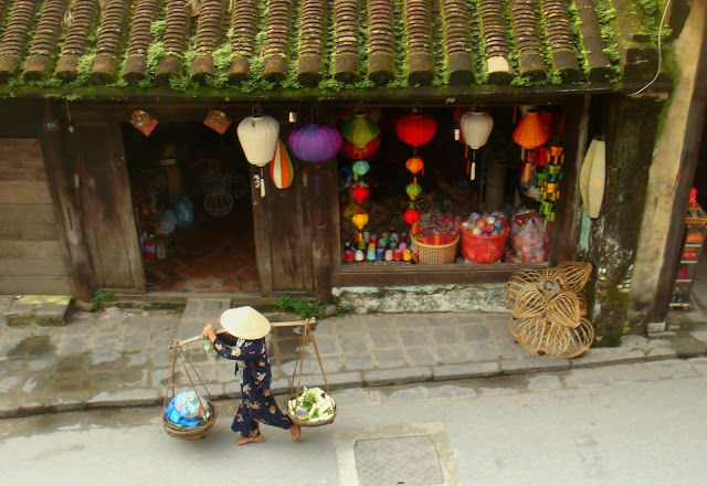 Je retourne dans les vieilles rues pour visiter ces vieilles maisons qui datent de l'époque de la route de la soie, époque ou Hoi An était un petit port prospère et qui depuis s'est ensablé et à laisser la prospérité à sa voisine Da Nang. Pas moins de 800 bâtiments historiques sont répertoriés dans la ville et le plus amusant est de la plupart des toits ont des tuiles en forme de ying et yang. Pour un meilleur écoulement des eaux, ils alternent les tuiles tantôt convexes et tantôt concaves. Ca améliore l'écoulement des eaux mais aussi protège les habitants de la maison. Preuve que ça marche, ces maisons n'ont jamais été bombardées.