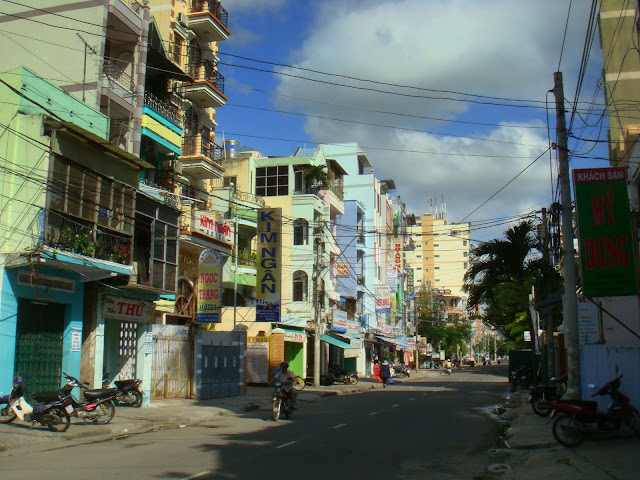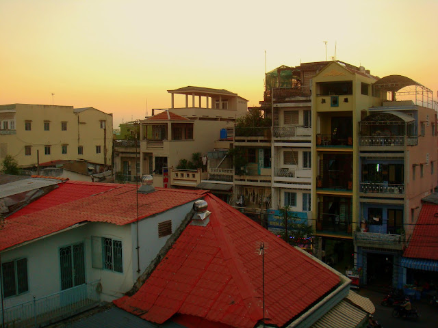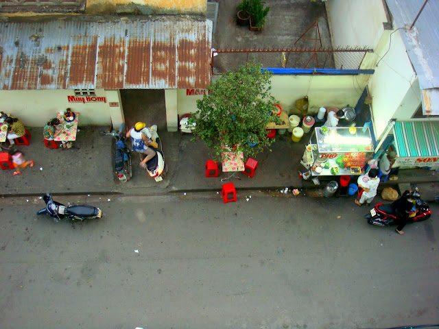 Me voilà déposé à Cantho et après avoir tourné un peu dans les rues et ruelles, je trouve où dormir dans un hôtel aux allures d'immeuble tenu par une mère et sa fille. J'aime l'atmosphère qui se dégage de cette région, tout est plus tranquille, l'air plus doux. Du haut de mon étage je peux voir les gens qui vont et viennent manger à la petite cariole en bas de ma rue.