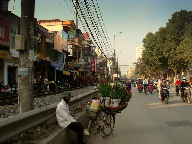 Sur le retour, j'observe un peu plus les quartiers que je traverse et qui s'étend le long des rails. Je me souviens d'une chose que me disait Chloé. A Hanoi y a un quartier par métier. Les forgerons, les cordonniers etc… et là fort à parier que je traverser le quartier des ébénistes.