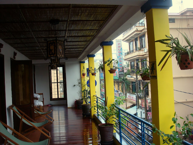 L'hostel est vraiment sympathique, loin de l'ambiance effervescente de celui de Hanoï, un air de maison coloniale et tout en extérieur. Vraiment agréable si ce n'était la pluie ! Alors j'en profite pour manger et écrire.