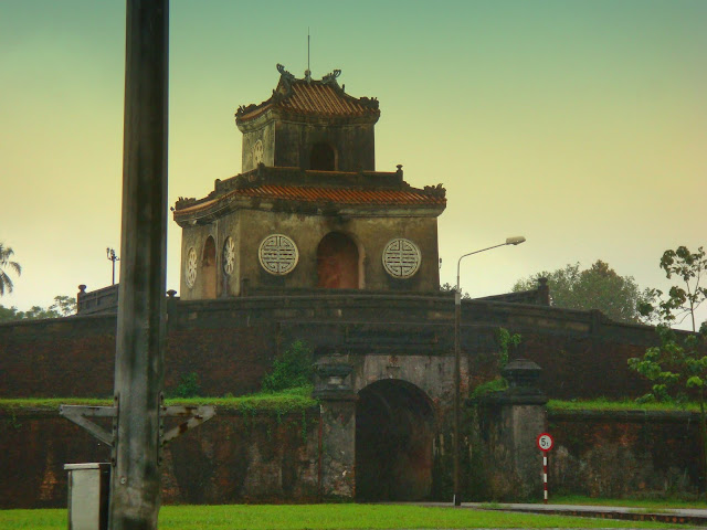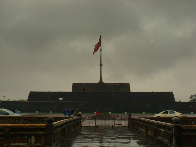 Cette première ville où je descends est Hué, l'ancienne capitale du Vietnam et qui est riche en histoire et en monument, du moins avant qu'elle ne soit bombardée. Une ville magnifique à découvrir si ce n'est le temps qu'il fait. Il pleut et le temps ne semble pas être prêt à se lever. Du gris du gris du gris avec de la pluie. Je prends possession de mon nouvel hostel juste là où nous arrête le bus, un hostel affilié avec le backpacker hostel de Hanoi. Là c'est le backpacker hostel de Hué !! Une affaire qui roule.