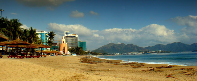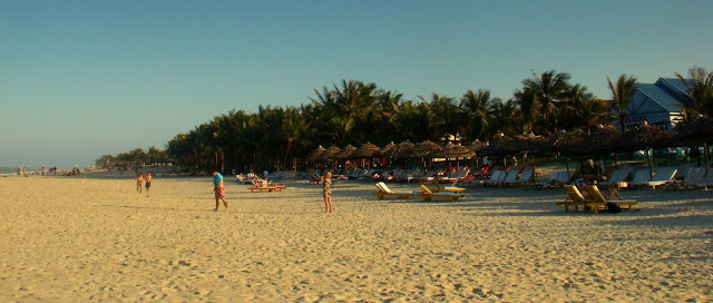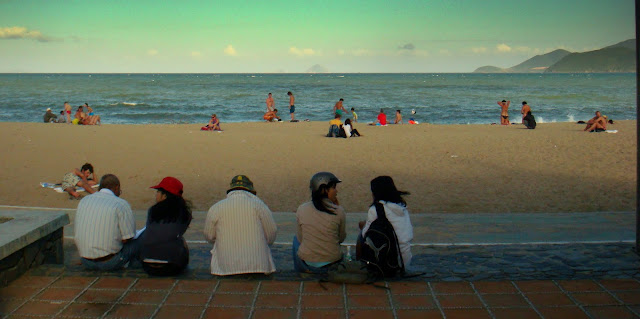 Elle me dit pour la lotion, si j'ai mal à la tête de me masser les tempes avec et le mal disparaît. Au loin une autre vendeuse lui hurle des choses en vietnamien. Mango n'est pas sur son coin de plage et pique un client à l'autre vendeuse. Echange de mots entre les deux femmes que je préfère ne pas comprendre. Mais Mango reste souriante et je lui dis aurevoir. C'est toujours bizarre même en parlant quelques minutes de rentrer dans la vie de ces gens. C'est pas les même sujets de conversation ou centre d'intérêt que dans nos pays. Même si du à la langue la discussion est moins profonde, elle demeure plus sincère.