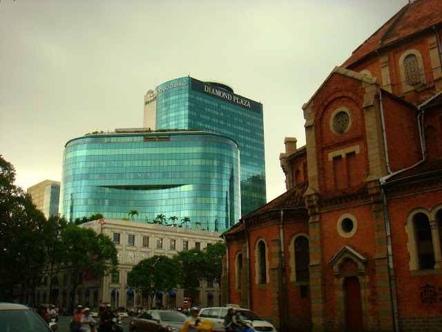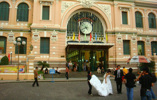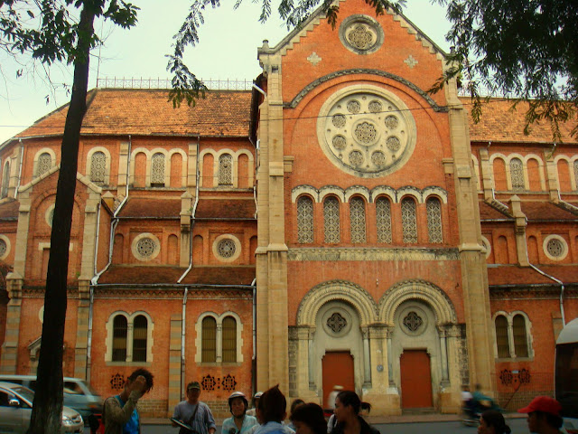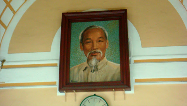 D'avoir mangé me fatigue d'un coup et je me repose avant de continuer cette journée déjà bien remplie mais loin d'être finie. Et oui je suis dans la capitale, je ne peux pas ne rien y faire. Je décide de suivre l'itinéraire du guide que j'ai pour découvrir certains aspects de la ville. Durée de la marche, 3 bonnes heures. Après m'être reposé un peu je pars à l'assaut de ces rues pour voir un temple chinois où sont vénérées les femmes, la poste aux allures de musée où l'on peut voir un immense portrait d'Ho Chi Minh dit l'oncle Ho. Cette poste est si belle que même des mariés viennent y faire leur photo de mariage. Ces rues me font voir aussi une cathédrale aux couleurs occitanes, goûter des glaces aux parfums inconnus comme le durian.