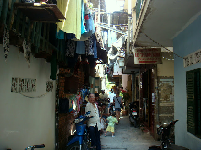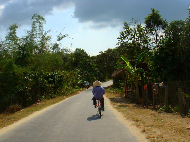 Sur le chemin je suis confronté à une histoire que m'avait dit Eric (rencontré en Mongolie) sur un ami à lui qui au Vietnam un jour à aidé un homme pour donner des renseignements à sa fille sur la France et plus particulièrement sur Lyon où elle allait étudier. Il a même été invité à manger chez eux le lendemain, sauf qu'il n'a jamais vu la fille et s'est retrouvé dans une drôle de combine pour plumer une femme (sûrement complice) ou plutôt se faire plumer au poker. Il s'est échappé en courant quand le gars lui a demandé d'augmenter les gains et d'aller chercher un peu plus d'argent au distributeur. Escorté par l'un des gars de la famille et sentant que le plumage allait être pour lui, il s'est enfui par la porte arrière de la banque. Donc marchant dans la rue et pour la deuxième fois de la journée on me demande d'où je suis et quand je réponds de France on me demande si je connais Lyon, je demande pourquoi et on me sert l'histoire d'une fille ou d'une sœur qui doit justement partir étudier ou travailler dans un hôpital là bas ou qui y est déjà et qui aurait besoin de conseils (le temps qu'il fait etc..). On me demande si je veux la rencontrer. Je leur réponds qu'elle n'a qu'à demander une fois sur place ou de se renseigner sur internet, j'hésite même à dire que je ne joue pas au poker. Peut être sont ils honnêtes, peut être sont ils des arnaqueurs. Toujours est il que l'un d'eux m'explique que le Vietnam et la France ont un programme d'échange hospitalier. Mais quand on me demande de venir chez eux pour appeler leur fille et lui dire quel temps comment est le temps en France alors qu'elle y est déjà manque un peu de finesse. J'hésite même si on me redemande à dire que je viens d'argentine ou d'Espagne pour voir si ils ont pas une sœur qui justement a prévu de travailler à Buenos Aires ou à Barcelone.
