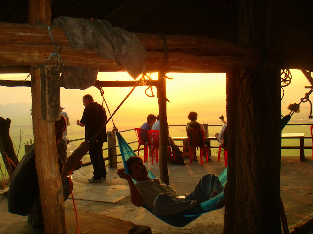 On tente de se parler, mais il parle pas un mot d'anglais. Il a les traits cambodgiens et je suis sûr qu'il me parle en khmer. Je ne connaitrais que son prénom et deux trois choses de plus que l'anglais basique permet de savoir. On reste quelques minutes, il m'a apporté une bouteille d'eau, sans doute se disait il que j'en aurais pas assez pour grimper tout ça. De temps en temps on entend la détonnation d'un fusil. Il sursaute comme si on lui tirait dessus. Avec tout ce que j'ai vu aujourd'hui j'imagine même qu'il sursaute car il a été traumatisé, mais il est trop jeune pour cela.