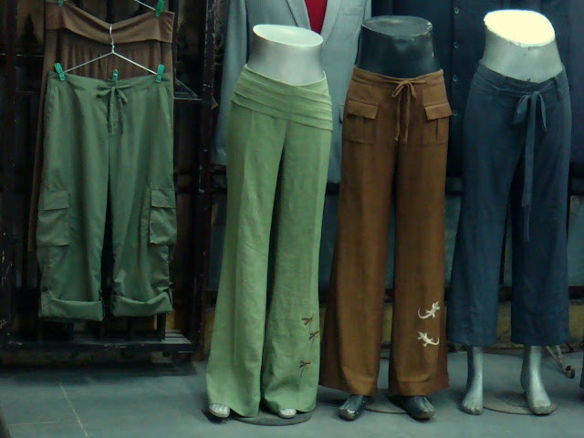 En retournant à l'hostel je passe devant un autre tailleur qui expose un pantalon pour femme à la coupe légère et fantaisiste et au vert clair qui pourrait plaire à Agnès. Je le prends en photo et le propose par mail.