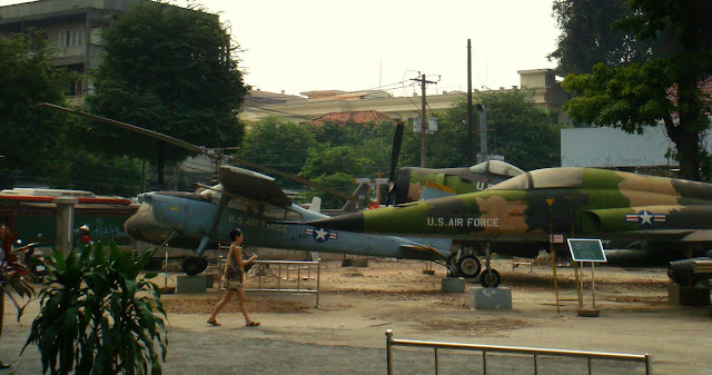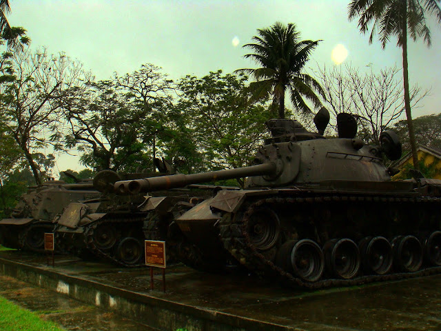 Une petite heure de marche aura suffit pour entrer dans l'histoire. A peine entrer dans la cours qu'hélicoptères américains, avions et chars d'assaut nous accueillent. On a l'impression d'un décor de film. On imagine le bruit des palmes, l'odeur du napalm, les chenilles des chars qui traversent la jungle.