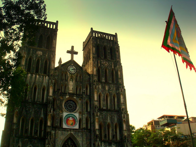 En continuant mon chemin je passe une énième fois et l'une des dernière fois dans la rue perpendiculaire à mon auberge où se trouve des bâtiments au style français et colonial et une cathédrale. L'un des visages de Hanoi qui peut surprendre parfois.