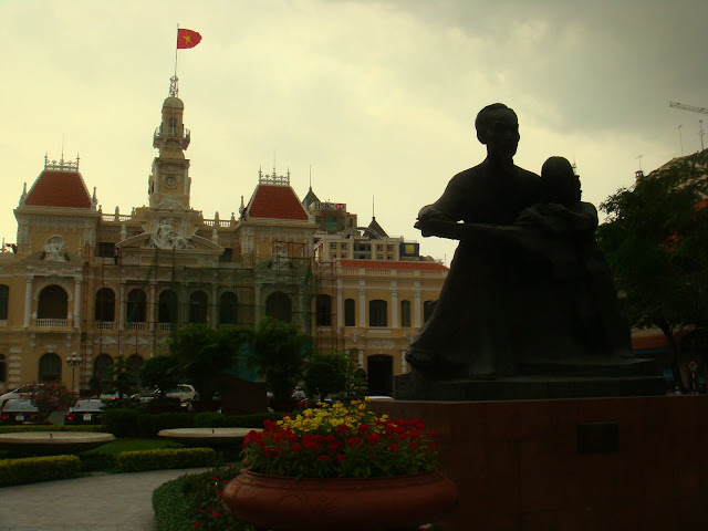Ho Chi Minh ville est trop grande pour que j'y reste sans y perdre mon temps comme à Hanoï au début. Alors j'ai décidé de voir le maximum de la ville en 24h chronos, histoire de visiter efficacement. Ca va bientôt faire un mois que je traverse le pays et au bout d'un mois mon visa expire. Il me reste après Ho Chin Minh ville à voir le delta du Maekong, réputé pour ses rizières et sa douceur de vivre au fil de l'eau. Je pourrais ne pas y aller et partir directement au Cambodge en bus depuis la capitale, mais je préfère la campagne à la ville et je me souviens que Yula m'avait dit qu'on pouvait rejoindre le Cambodge par bateau, en remontant le maekong depuis une ville qui se trouve dans son delta, Chau Doc. Ca rajoute au rêve des passages de frontières. A moi d'être efficace sur la capitale pour me garder quelques jours de bon temps dans le sud du pays.