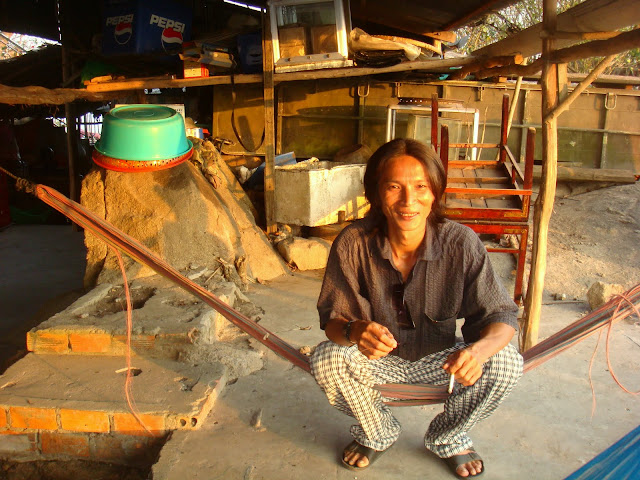 Seules deux femmes sur tout le village ont survécu. Deux fillettes à l'époque laissés pour mortes aux milieux des cadavres. Je vois deux photos d'elles, on n'imagine pas à leur regard paisible l'horreur quelles ont vécu. On visite un petit temple où un moine me montre des endroits où les khmers rouges exécutèrent des villageois.