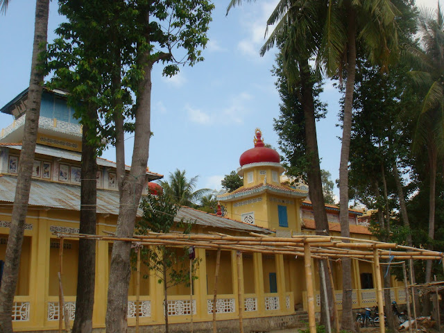 Il m'emmène à Ba Chuc, un petit village tristement célèbre où les khmers sont venus assassiner tout un village. 3000 personnes périrent. On voit un mémorial où sont exposés les crânes des villageois.