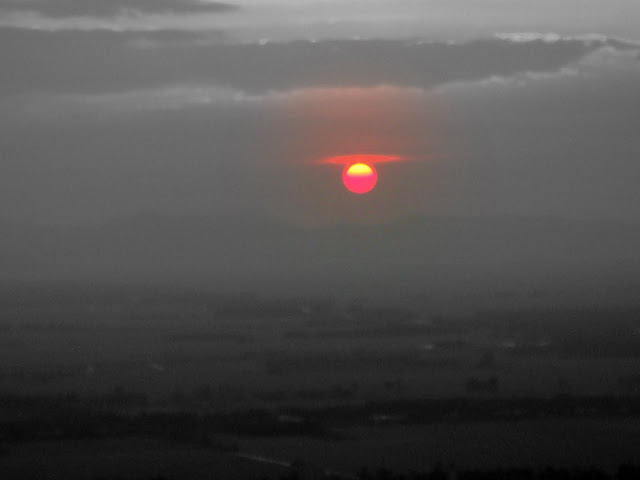 Le ciel change de couleur a une vitesse vertigineuse, le soleil nous montre tous ses dégradés de rouge et entre deux chaudes gorgées de thé vert, je regarde du bout des terres vietnamiennes, le soleil se coucher sur le Cambodge, futur pays d'aventures.